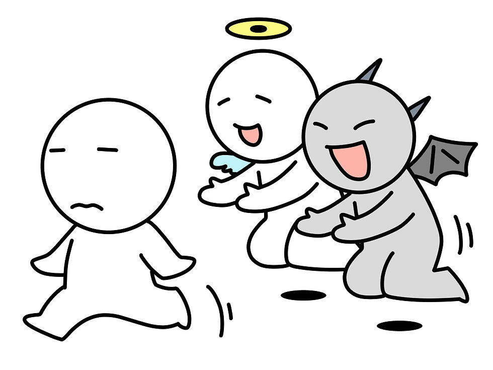 よく映画等で、その登場人物の頭の中に、天使と悪魔が出てきて、